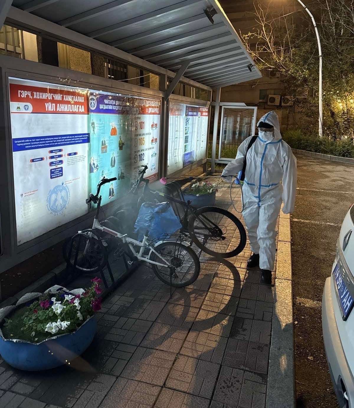 Цэвэрлэгээ үйлчилгээний араас төвийн 6 дүүргийн хэмжээнд нийт гудамж, талбайд мэргэжлийн тусгай зөвшөөрөл бүхий байгууллага болон дүүргийн мэргэжлийн байгууллагууд хамтран ариутгал халдваргүйжүүлэлт хийлээ. Урьдчилсан байдлаар 355.000 ам метр талбайг замын хөдөлгөөн нэмэгдэхээс өмнө ариутгаж амжлаа.