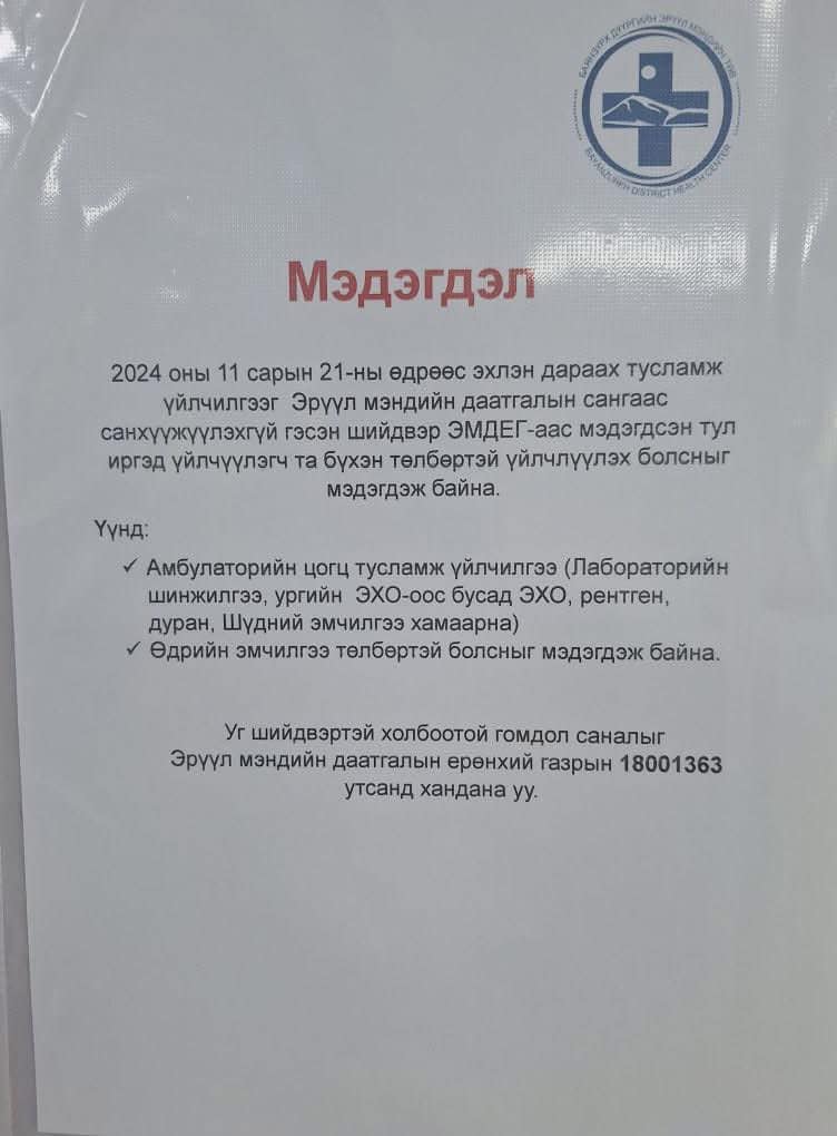 Хоёрдугаарт: Эмч нарын асуудлын хэншүү ч намжиж амжаагүй байтал удалгүй Эрүүл мэндийн даатгалын сан хоосорсон тул иргэдийг улсын эмнэлгээр үйлчлүүлэхдээ мөнгөө төлж байхыг анхааруулсан мэдээлэл гарсан. Үүнд иргэдийн дургүйцэл дээд цэгтээ хүрсэн юм. Тодруулбал, өнгөрсөн жилийн арван нэгдүгээр сарын 20-ны өдөр Монгол-Японы хамтарсан эмнэлэг болон нийслэлийн БЗД-ийн Эрүүл мэндийн төв “Эрүүл мэндийн даатгалын сангаас эмнэлгүүдэд санхүүжүүлэхгүй гэсэн тул төлбөртэй үйлчилнэ үү” гэх мэдээлэл гаргасан юм. Улмаар "Эрүүл мэндийн даатгалын сан хоосорсон, оны сүүл гэхэд эмнэлгүүдийн төсөв хүрэхгүй дуусдаг” гэсэн тайлбар мэдээлэл гарч байв. Энэ мэдээлэл нь олны анхаарлын төвд орж, иргэдийн дургүйцлийг хүргэсэн учраас удалгүй эмнэлгүүд хэвийн даатгалаараа үйлчилж эхлэв.