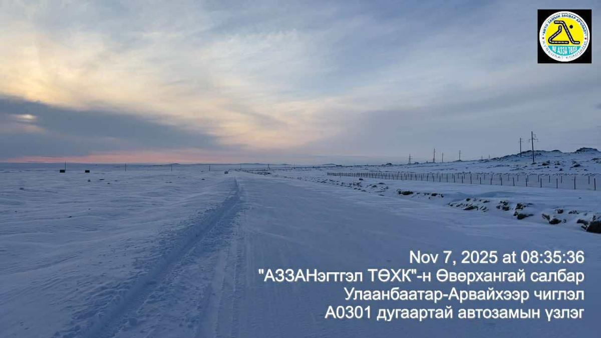 Өнгөрсөн хоногт /2025.11.06-07/ цас их хэмжээгээр орсон Улаанбаатар-Арвайхээр-Арвайхээр-Баянхонгор чиглэлийн А0301, А0302 дугаартай хатуу хучилттай улсын чанартай авто замын зорчих хэсэгт зам, даваа гүвээнд халтиргаа гулгаа, мөстөлт үүссэн байна.