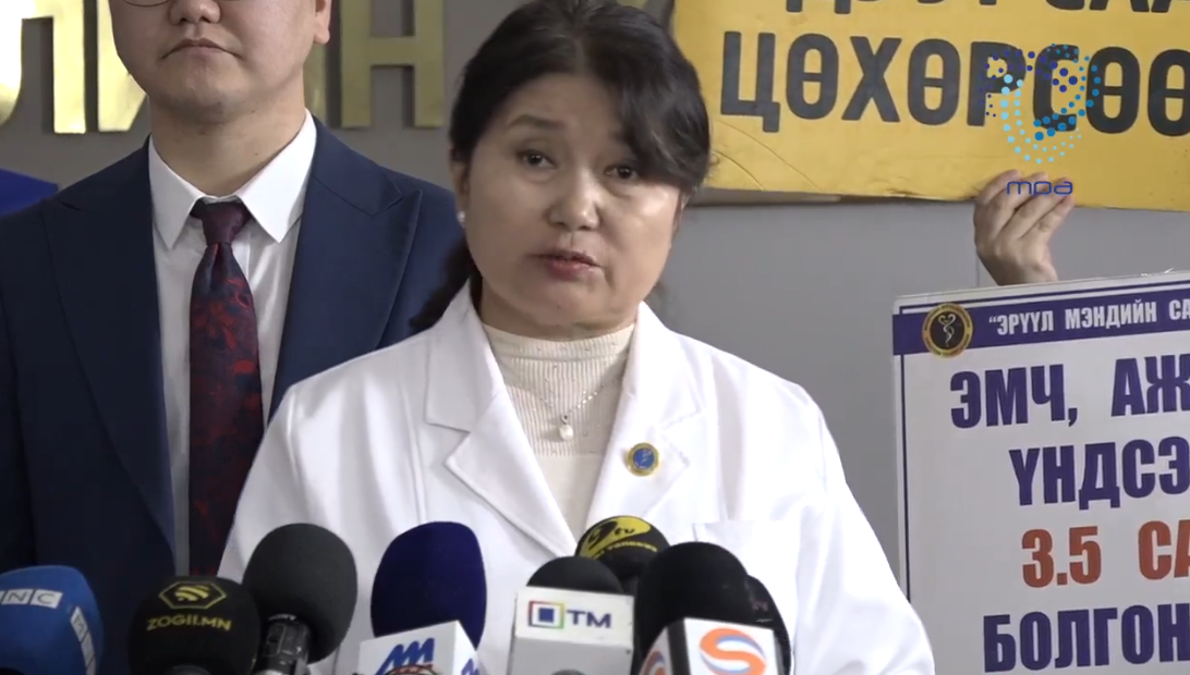 Эмч нар энэ сарын 13-наас цалингаа нэмүүлэхийн тулд ажил хаяхаар болоод буй. Үүнтэй холбогдуулан эмч нарын төлөөлөл өнөөдөр мэдээлэл хийлээ. Энэ үеэрээ "Эмнэлгүүд 0 зогсолт хийхэд ойрхон байна. ЭМ-ийн сайд эмч нарын цалингийн асуудалд үүрэг чиглэл авсан бололтой. Таг дуугүй байна. Эмч нарынхаа цалинг нэмэхгүй байж, барилгын суурь нь ч тавигдаагүй Эко таур, Хүннү хотын захирагчийн алба сард жилд 163 тэрбум 740 мянган төгрөгийн түрээс төлөөд ажиллаж байна. Энэ сарын 12-нд Үндэсний хэмжээний жагсаал зохион байгуулна. 13-наас эмч нар ажил хаяна. Эмч нарын цалинг 3.5 сая төгрөг болгохыг шаардаж байна. Шууд 3.5 сая төгрөг болго гэж шаардахгүй. Хэлэлцээрийн ширээний ард сууя гэж байна" гэлээ.