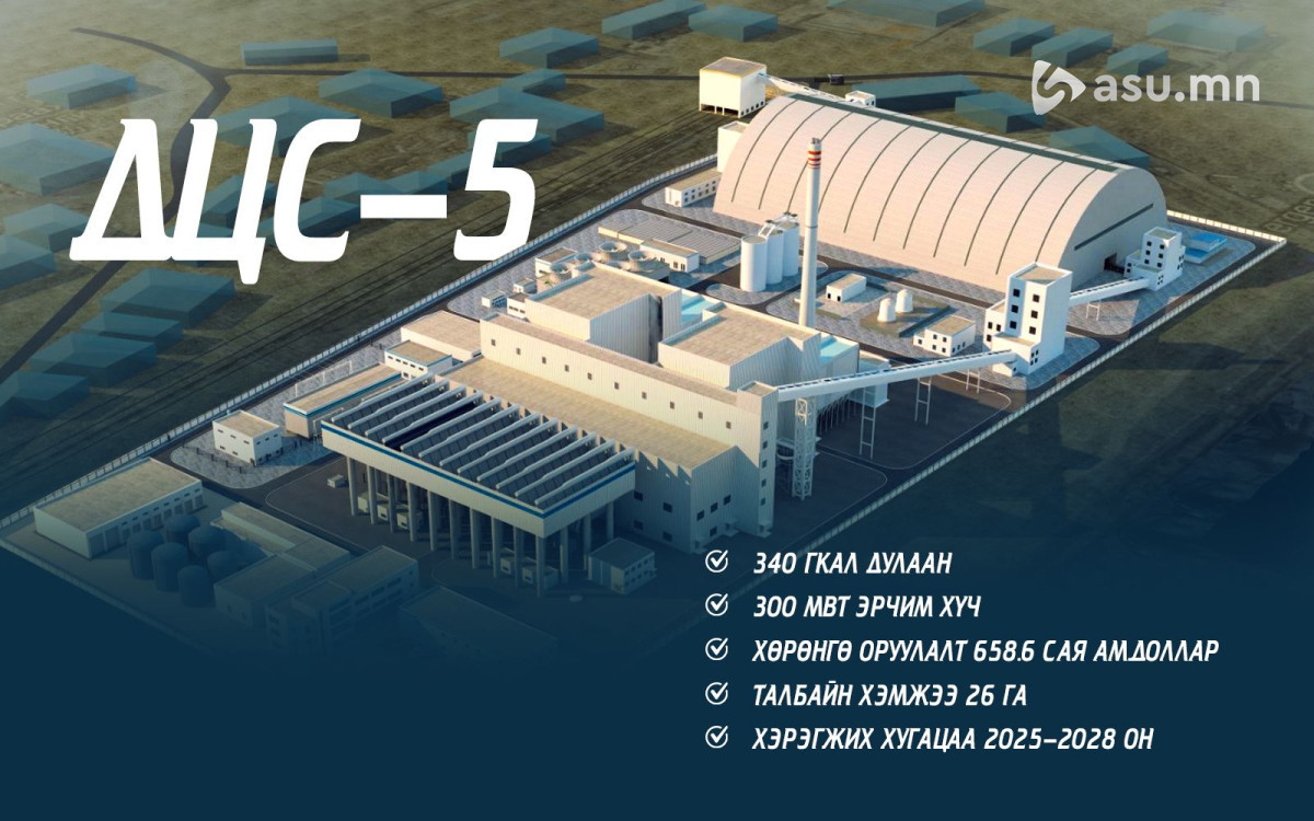 Улаанбаатар хотыг хөгжүүлэх мега төслүүдийн нэг Дулааны тавдугаар цахилгаан станцыг эрчим хүчний салбарт анх удаа төр, хувийн хэвшлийн түншлэлээр барина. Барилга угсралтын ажлын гүйцэтгэгч, хувийн хэвшлийн түншлэгчээр “Митайм Интернэйшнл" компани шалгараад байна. Уг станцыг Улаанбаатар хотын Баянгол дүүргийн 20 дугаар хорооны нутаг дэвсгэр ДЦС-2-ын үнсэн сан дээр 26 га талбайд барьж, 2028 онд ашиглалтад оруулна. Тухайн байршил нь харилцаа холбоо, авто болон төмөр замын тээврийн дэд бүтэц сайтайгаас гадна түлш, үнс агуулах талбай нь бэлэн байгаа онцлогтой. Дулааны тавдугаар цахилгаан станц нь 300МВт эрчим хүч, 340Гкал дулаан үйлдвэрлэх хүчин чадалтай. Агаар мандалд хаягдах утаанд агуулагдах NOx, SO2-ын хэмжээг хянах хяналтын системтэй эргэлтэд буцлах үет шаталттай CFB технологийн зуухтай байна.