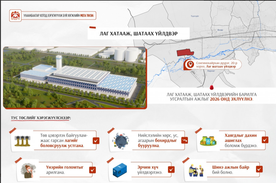 Иймд инженерийн дэд бүтцийг сайжруулах хүрээнд “Лаг хатааж, шатаах үйлдвэр”-ийн төслийг 2025-2027 онд хэрэгжүүлэхээр төлөвлөсөн.