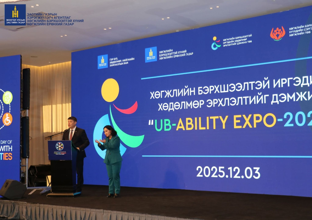 Хөгжлийн бэрхшээлтэй иргэдийн хөдөлмөр эрхлэлтийг дэмжих ажлыг эрчимжүүлэх, хөгжлийн бэрхшээлтэй иргэдийн үйлдвэрлэл, үйлчилгээг олон нийтэд таниулах, ажлын байранд зуучлах, үр дүнтэй ажиллаж байгаа төр, хувийн хэвшлийн байгууллагыг сурталчлах, иргэдэд хөдөлмөр эрхлэлт, нийгмийн хамгааллын үйлчилгээг үзүүлэх зорилго бүхий UB-ABILITY EXPO-2025 арга хэмжээг Хөгжлийн бэрхшээлтэй хүний эрхийг хамгаалах Олон улсын өдрийг тохиолдуулан зохион байгууллаа.