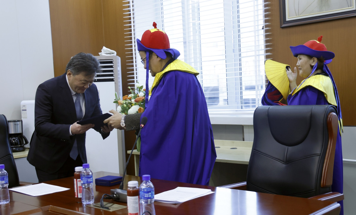 Хүндэт доктор цол тэмдгийг гардуулах ёслолд Монголбанкны Ерөнхийлөгч Б.Лхагвасүрэн болон холбогдох удирдлагууд, МУИС-ийн Бизнесийн сургуулийн Эрдмийн зөвлөлийн гишүүд, эрдэмтэн докторууд оролцов.