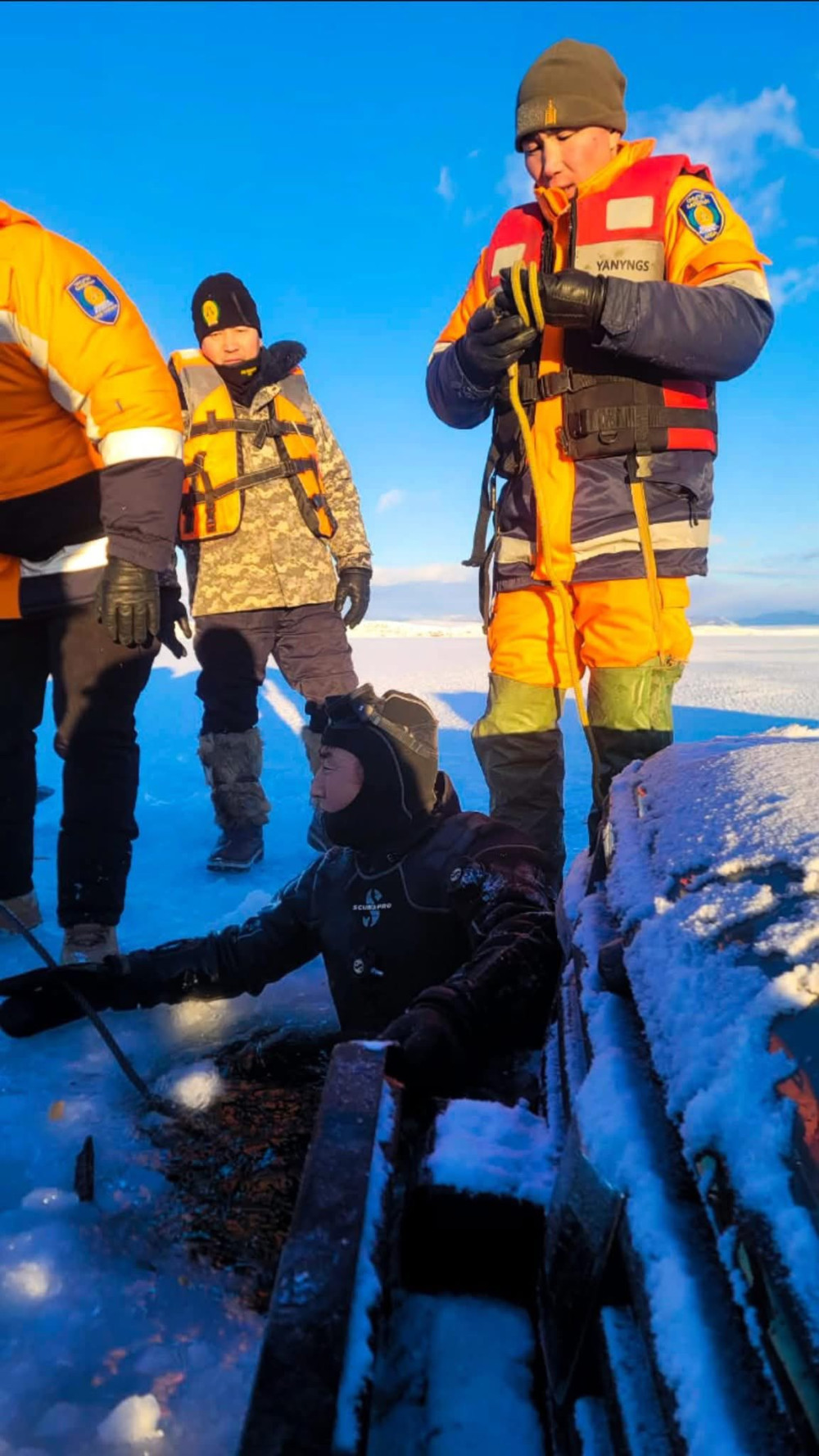 Дуудлагаар Эрэн хайх, аврах салбарын захирагч ахмад Б.Тэнгисээр ахлуулсан алба хаагчид, Рэнчинлхүмбэ сумын мэргэжлийн ангийн бүрэлдэхүүн ажиллаж, 20см зузаантай нуурын мөсийг зүсэж замыг чөлөөлөн цөмөрсөн автомашиныг татан гаргаж холбогдох албан тушаалтанд хүлээлгэн өглөө.