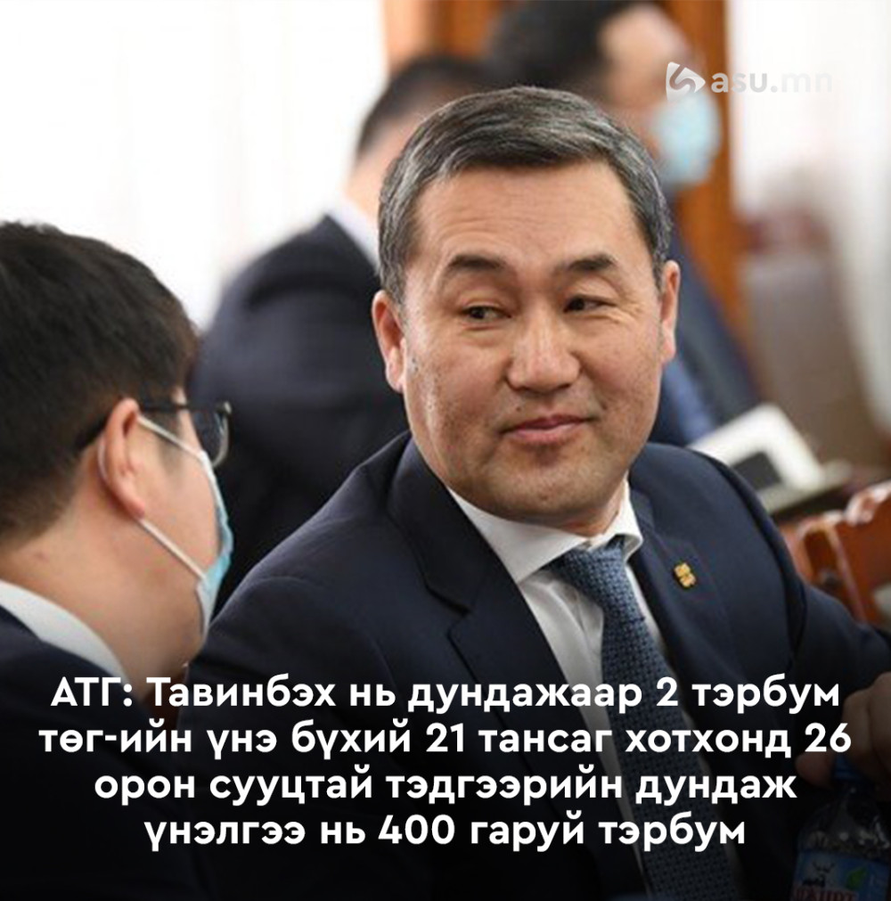 Тус хэрэгт холбогдсон Эрчим хүчний сайд Н.Тавинбэх нь дунджаар 2 тэрбум төгрөгийн үнэ бүхий 21 тансаг зэрэглэлийн хотхонд 26 орон сууцтай, тэдгээрийн дундаж үнэлгээ нь 400 гаруй тэрбум төгрөгийн хөрөнгөтэй гэх.