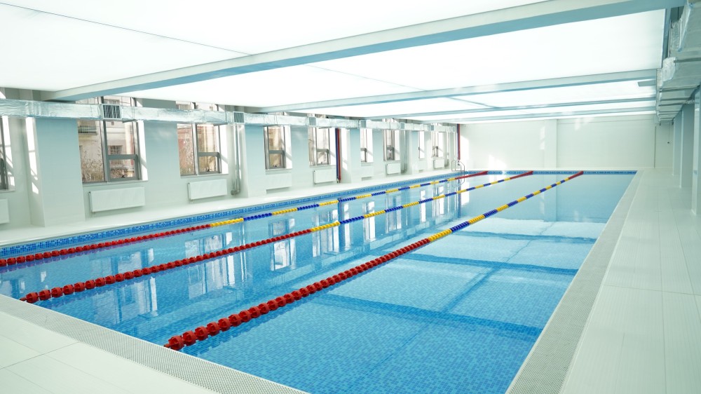 Нийслэлийн төсвийн хөрөнгө оруулалтаар баригдсан хоёр давхар барилга нь нэгдүгээр давхартаа олон улсын стандартад нийцсэн 25м х 8.8м хэмжээтэй усан бассейн, багшийн болон эмчийн өрөө, эрэгтэй, эмэгтэй хувцас солих өрөө, шүршүүр, ариун цэврийн өрөө, техникийн зориулалтын өрөөнүүдийг иж бүрнээр нь барьсан.