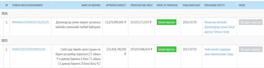 Хотын дарга Х.Нямбаатартай ойр ажлын хамтрагч, МАН-ын Гишүүн, НИХТ Б.Сэргэлэнбаатарын хувь эзэмшдэг компани томоохон төсөвтэй хоёр тендерт шалгарчээ. Эхнийх нь НИХТ Б.Сэргэлэнбаатарын хувь эзэмшдэг Професионалстрой ХХК 223 тэрбумын төсөвтэй Сэлбэ дэд төвийн хоёр блок орон сууц барих тендерт шалгарсан. Удаах нь Даланзадгад сумын амралт зугаалгын нийтийн эзэмшлийн талбай байгуулах 19 тэрбумын тендерт шалгарчээ.
